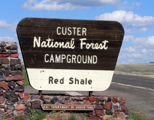We stop this evening at Custer National Forest Red Shale Camp and only one other R.V. is here.